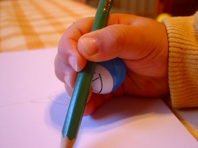 ドラえもんを手に装着してペンを持たすと、いつも変な風に持ってボキボキと芯を折っていたうちの子でもちゃんと綺麗にペンが持てました。しかも嫌がらずに喜んで持ってくれたのが凄いです。